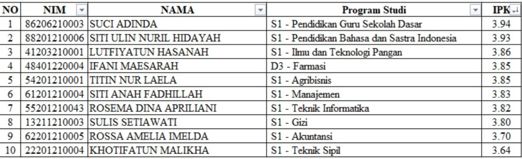 10 Wisudawan Terbaik